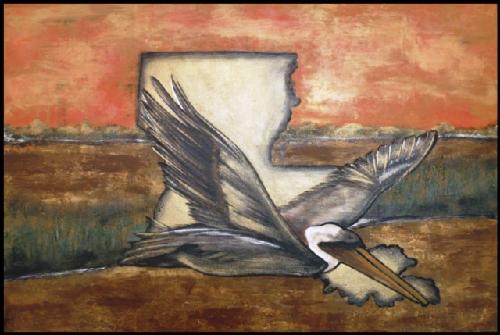 When local jeweler Rudy Rihner of Rihner's Jewelers asked me to paint a piece of art that depicts the tragedy created by the oil spill in the Gulf of Mexico off the coast of Louisiana, the first thing that came to mind was, of course, the pelicans, the marsh and our beautiful state! The more I thought about the lives lost and the people and animals affected by the Deep Water Horizon oil spill, the more determined I was to do it. I am really proud of my painting we named "Recapturing our Culture" and especially proud of the colloborative effort between myself and Rudy to create a line of jewelry from the artwork. The collection includes unisex pendants, cuff links, tie tack, lapel pin, ring and bracelet.